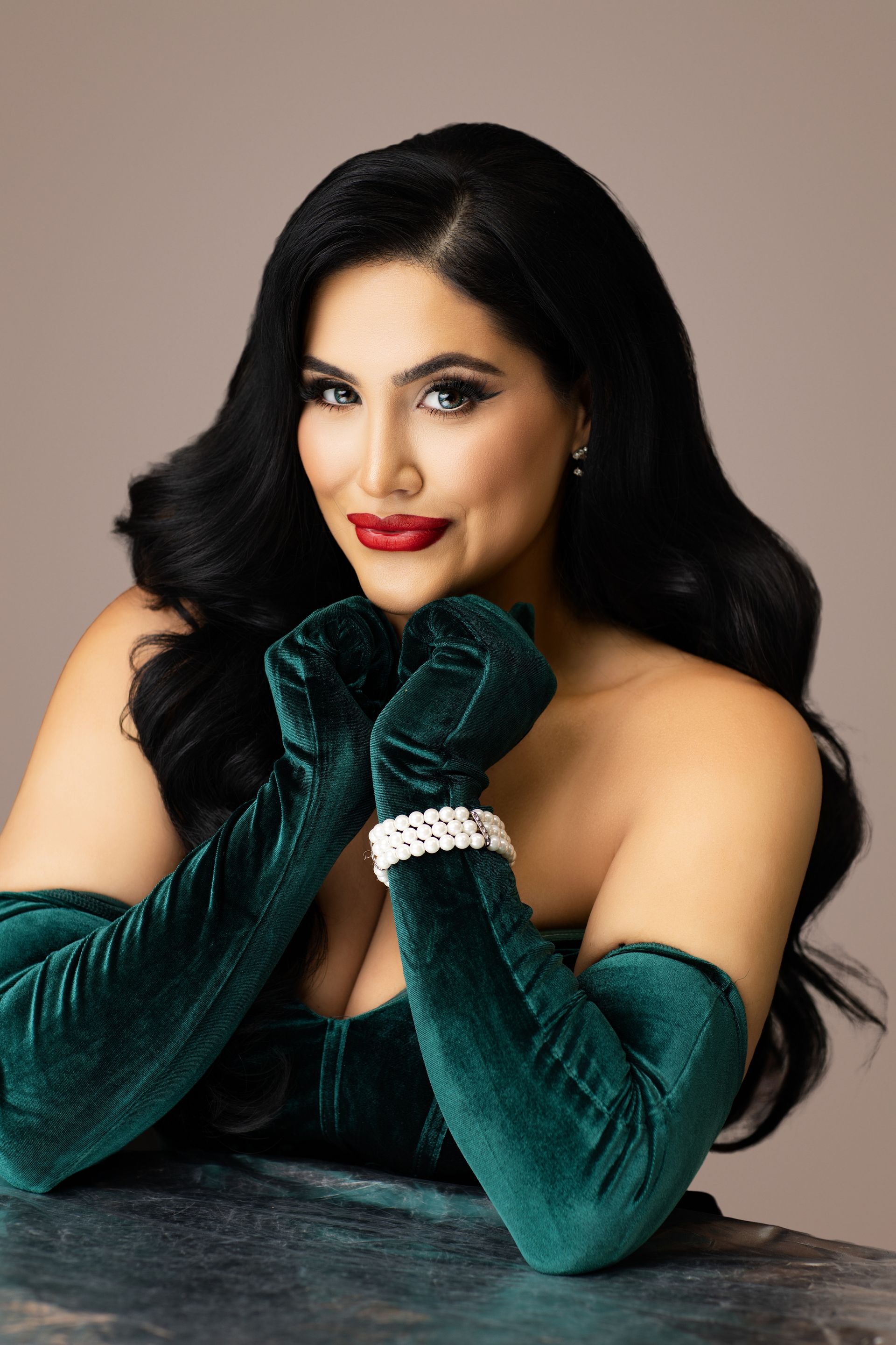 A magazine-style photoshoot with Kinda Arzon, including a final retouched portrait and images that celebrate her journey.